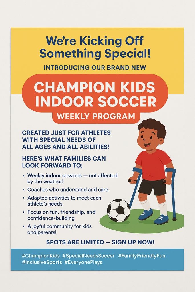 At Champion Kids Indoor Soccer, our mission is simple: to create a joyful, supportive space where athletes of all abilities can thrive, grow, and celebrate their love of the game.