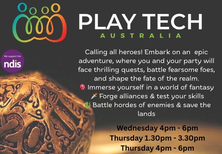 Play Tech’s Dungeons & Dragons Social Group offers a term-based program where players team up, roll dice, and embark on epic quests – while also building social, emotional, and communication skills in a relaxed and inclusive space.