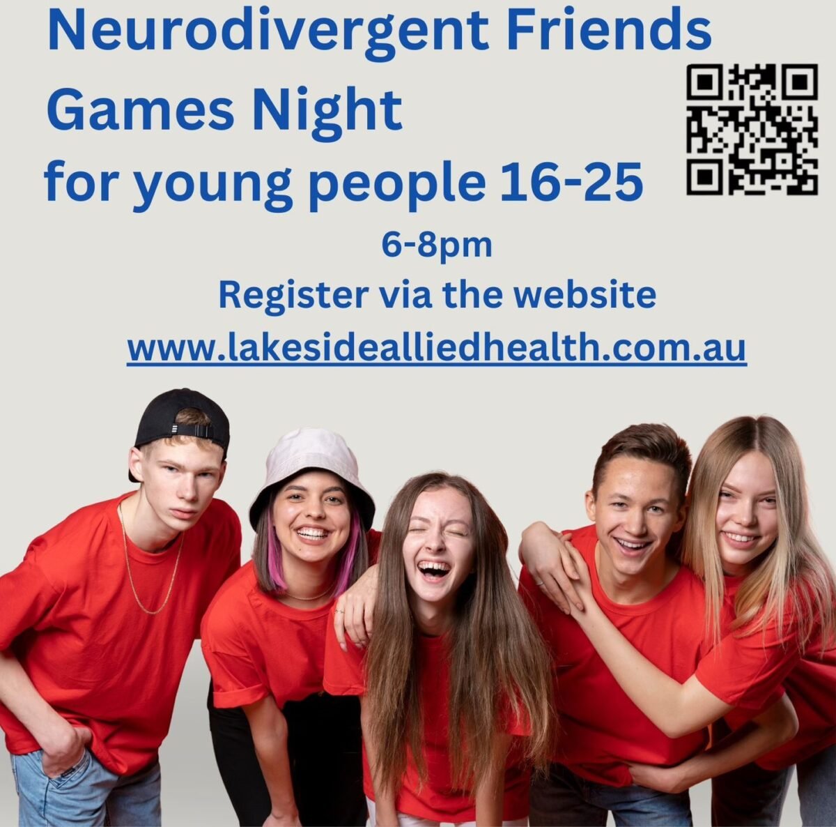 - Supportive Environment: Lakeside Allied Health is committed to creating a space where neurodivergent individuals can feel truly at home. We encourage participants to be themselves, but ask that everyone contributes to maintaining a safe and positive atmosphere. There is no loud music or flashing lights and strictly no alcohol.
