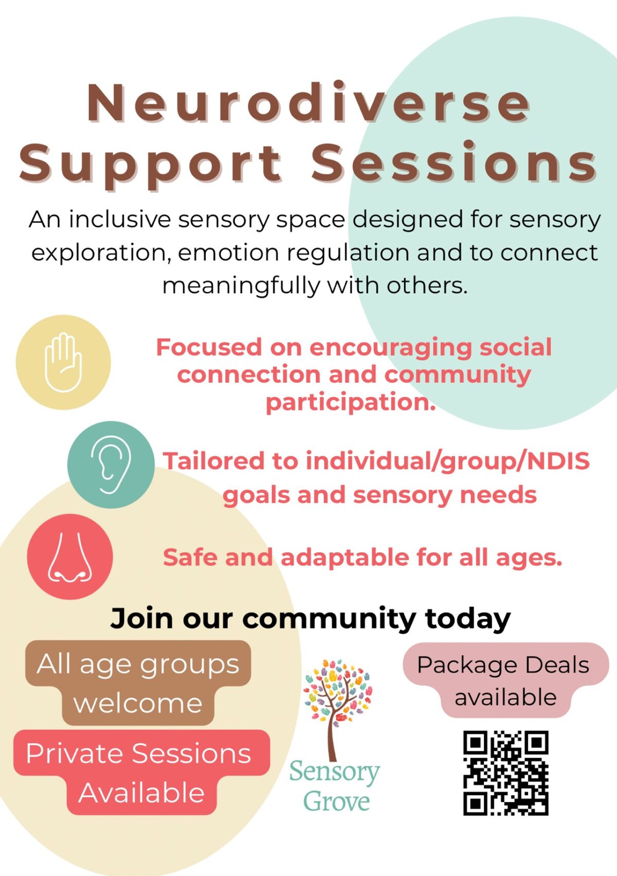 At Sensory Grove, we offer small, supportive group sessions designed to inspire growth, confidence, and connection. It is also an opportunity for families, support workers and the wider community to connect and share experiences in a welcoming environment.