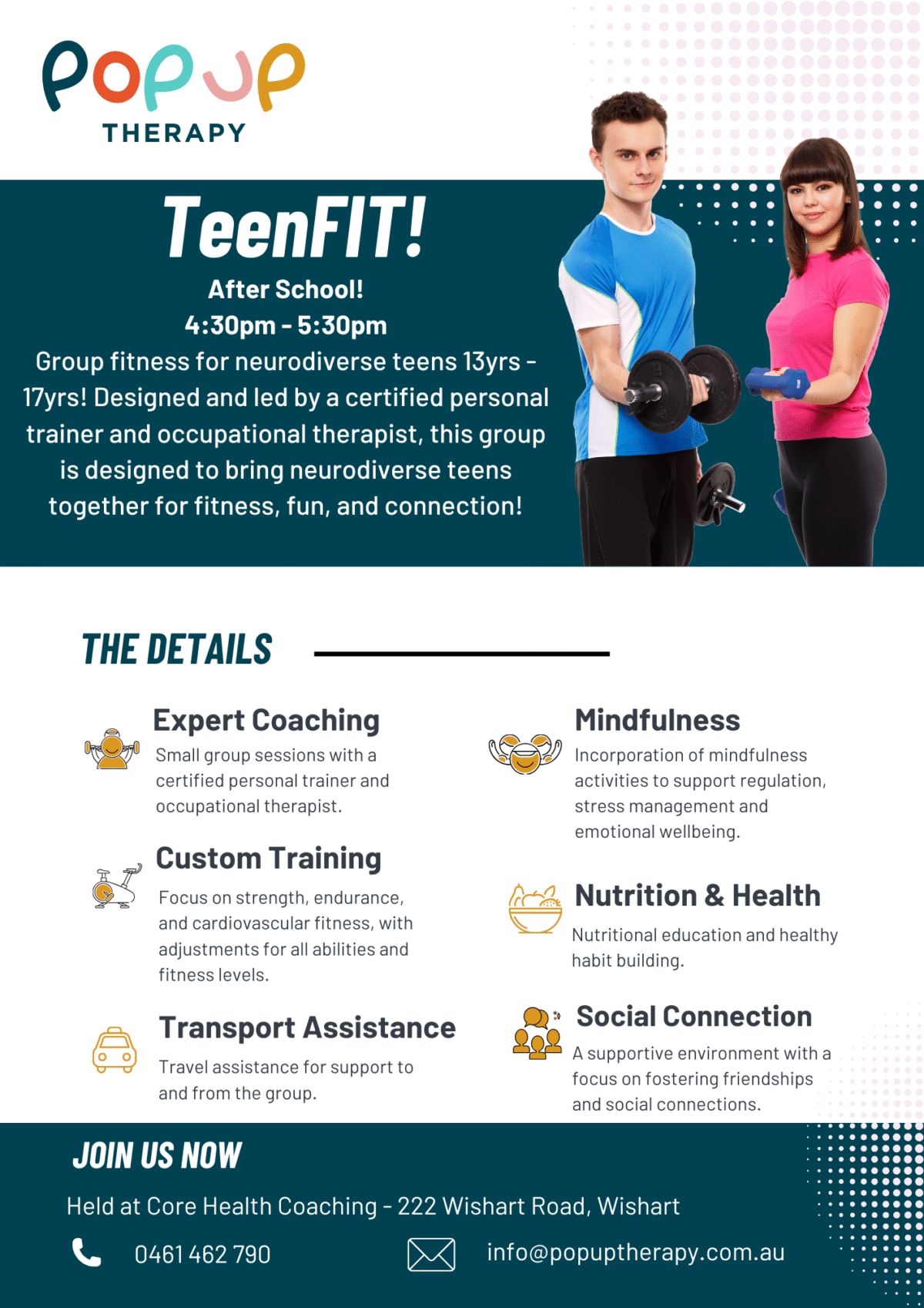 Designed and led by a certified personal trainer and occupational therapist, this group is designed to bring neurodiverse teens together for fitness, fun, and connection!