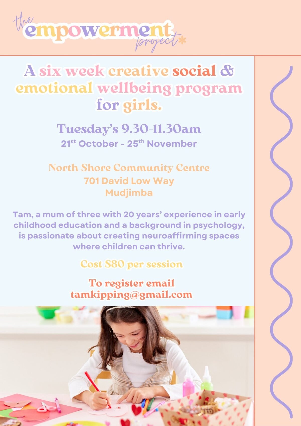 Through storytelling, art, sensory play, movement, and gentle discussion, we explore emotional regulation, self-esteem, friendships, boundaries, and mindfulness – building the emotional toolkit every young girl deserves to thrive.